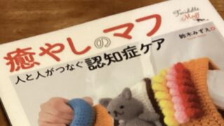 片手のマフハンドバッグの取手のように端にニギニギ用の棒状の小物がついている丈の短いマフを発見。これは片手用のマフだとのこと。「ケアマフ編む会」で楽しくおしゃべりしながら、サーマルステッチを学んだ。ここで現物のサンプルをたくさん見た時、片手用...